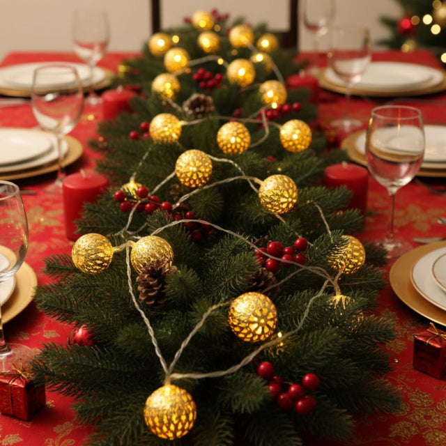 Con 10 focos cálidos en forma de esferas doradas, esta guirnalda aporta un resplandor sofisticado y festivo, ideal para destacar cualquier espacio de tu hogar.