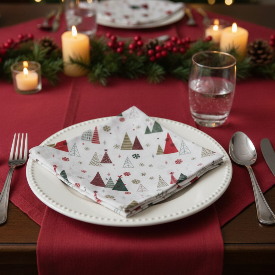 Su estampado alegre y delicado es ideal para sumar calidez y espíritu navideño a tus comidas y celebraciones.