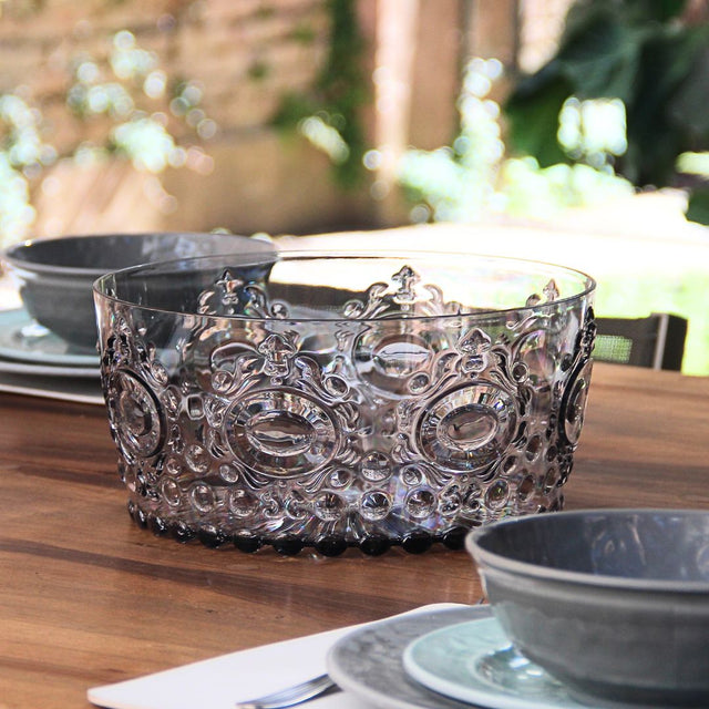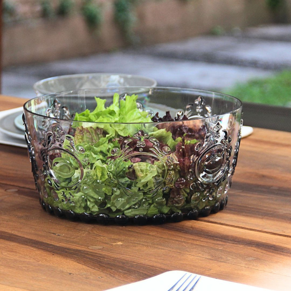 La Ensaladera Acrílico Imperial Smoky es la protagonista ideal para lucir en tu mesa. Su acabado gris ahumado y el relieve estilo imperial la convierten en una pieza elegante y práctica a la vez, perfecta para realzar tanto comidas cotidianas como encuentros especiales.