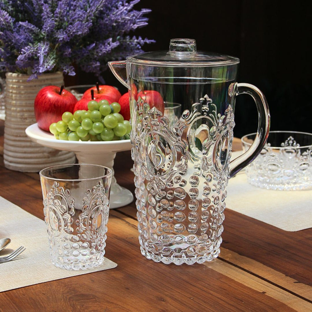 La Jarra Acrílico Imperial de 2.4 litros es la opción ideal para llevar elegancia y funcionalidad a tu mesa. Con dimensiones de 27 cm de altura, 16 cm de diámetro y una base estable de 10 cm, su diseño presenta relieves decorativos estilo imperial que evocan un aire sofisticado y clásico. Fabricada en acrílico de alta calidad, es resistente, ligera y segura, perfecta para el uso diario o en eventos especiales.