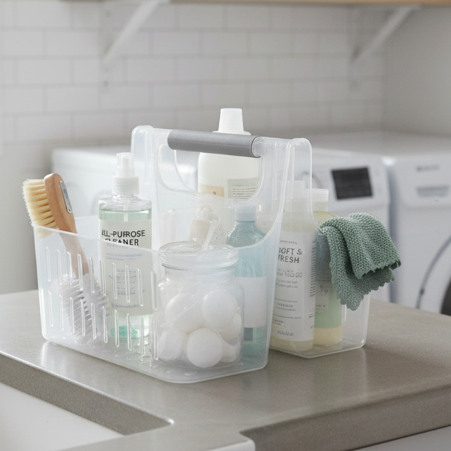 La Carry Box Simple Life combina estética minimalista y funcionalidad práctica. Su estructura translúcida con manija ergonómica reforzada permite transportar fácilmente productos de limpieza, cosmética o accesorios, manteniendo cada espacio en equilibrio y perfectamente organizado.