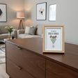 - Diseño: marco box de madera clara con ilustración estilo California vibes