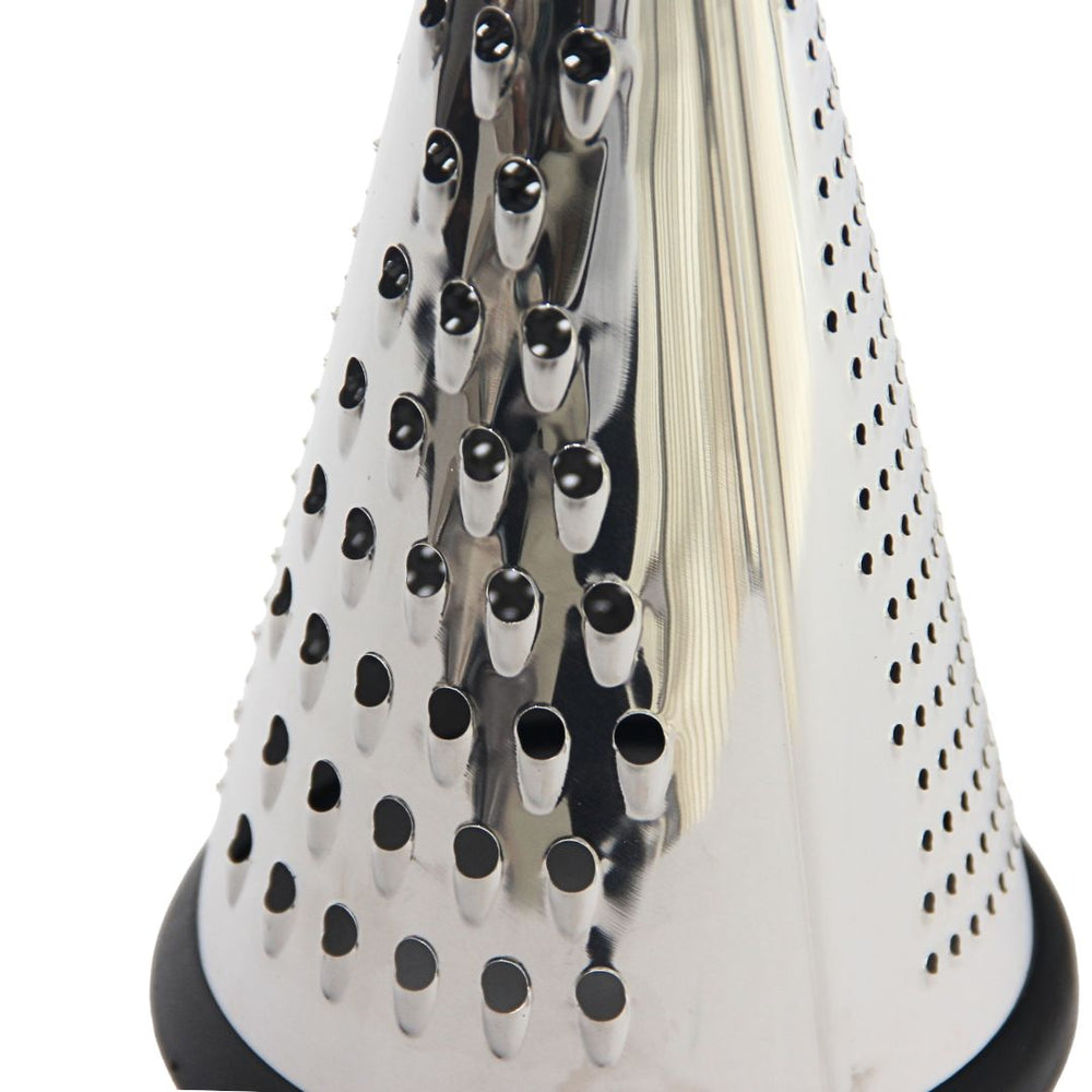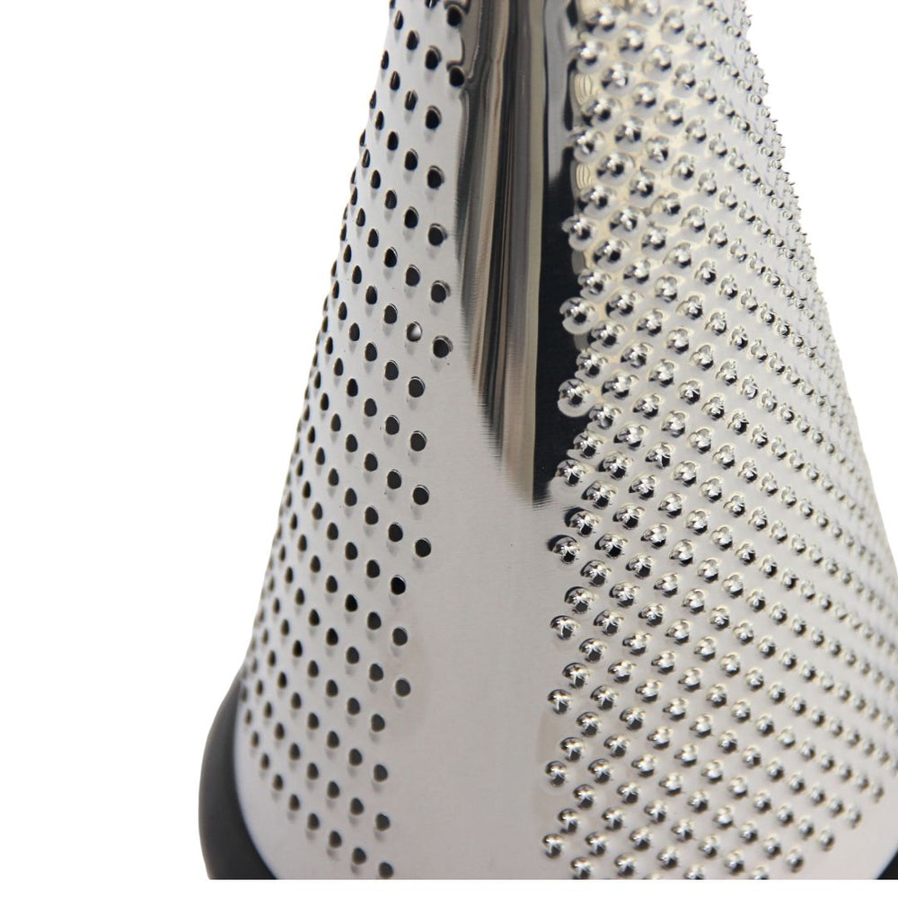 El Rallador Cónico Gourmet combina el brillo del acero inoxidable con la calidez de la madera natural. Su formato cónico facilita el uso y aporta un toque elegante y moderno a la cocina. Ideal para rallar quesos, verduras o frutas con comodidad y precisión.
