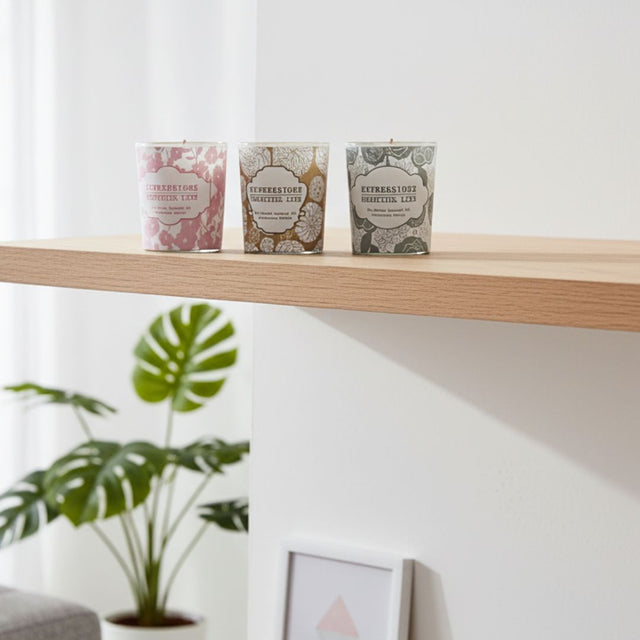 Un trío pensado para quienes disfrutan de los pequeños detalles. Sus vasos decorativos elevan la decoración, mientras la calidez de la llama crea una atmósfera acogedora y armónica.