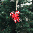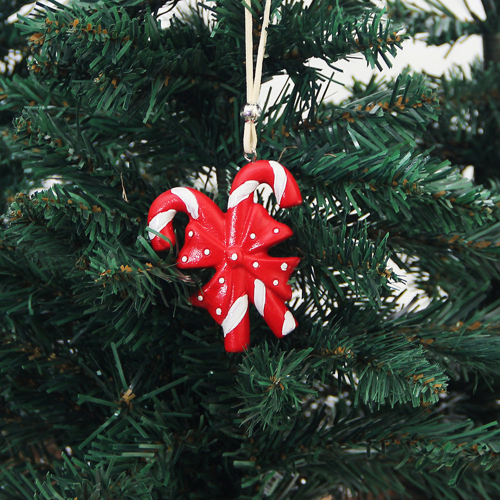 El Adorno Candy Bow combina los tradicionales bastones de caramelo con un lazo festivo en tonos rojo y blanco, creando un diseño alegre y luminoso que evoca el espíritu más dulce de la Navidad.