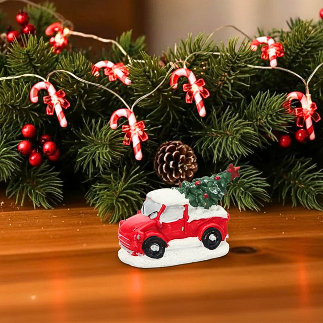 El espíritu navideño en movimiento 🎄✨ Este encantador adorno representa un clásico auto rojo cubierto de nieve que transporta un pino hacia casa para celebrar la Navidad. Su diseño lleno de detalles —desde las luces hasta la textura nevada— aporta calidez y nostalgia a tu decoración.